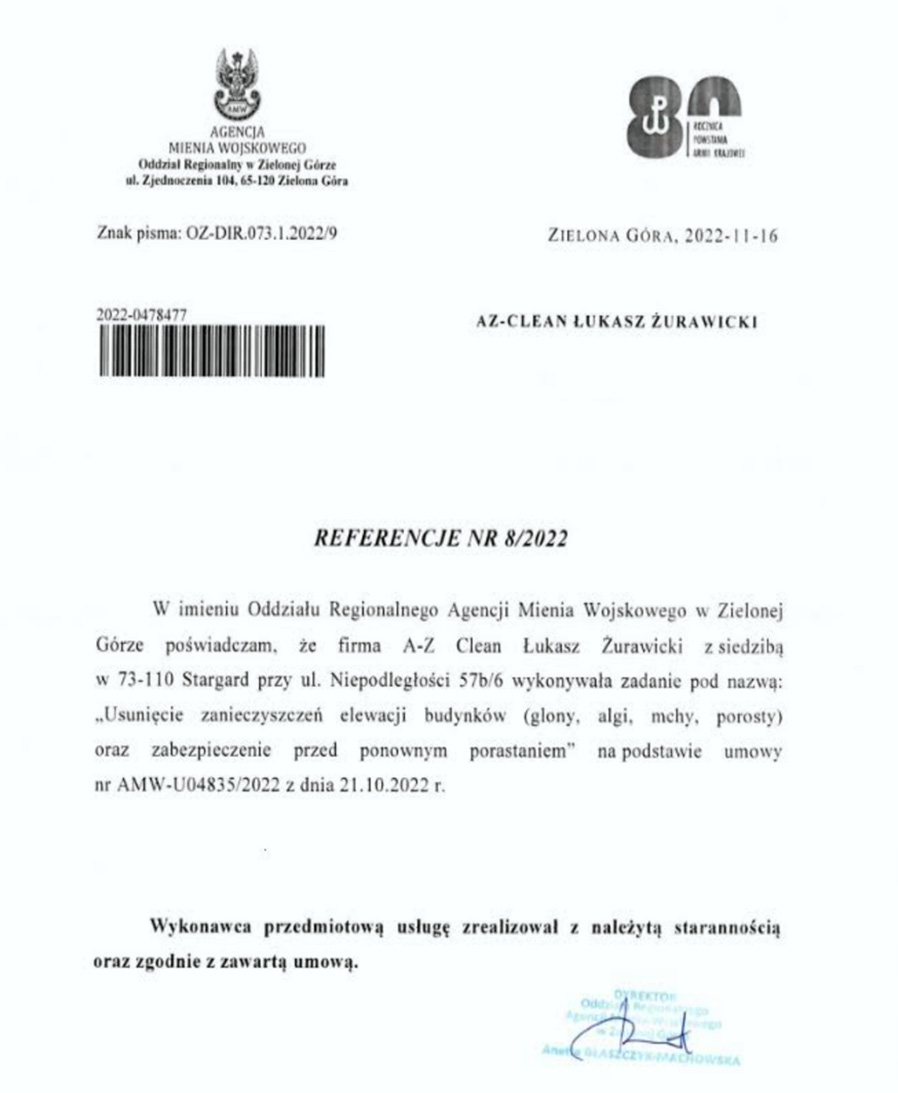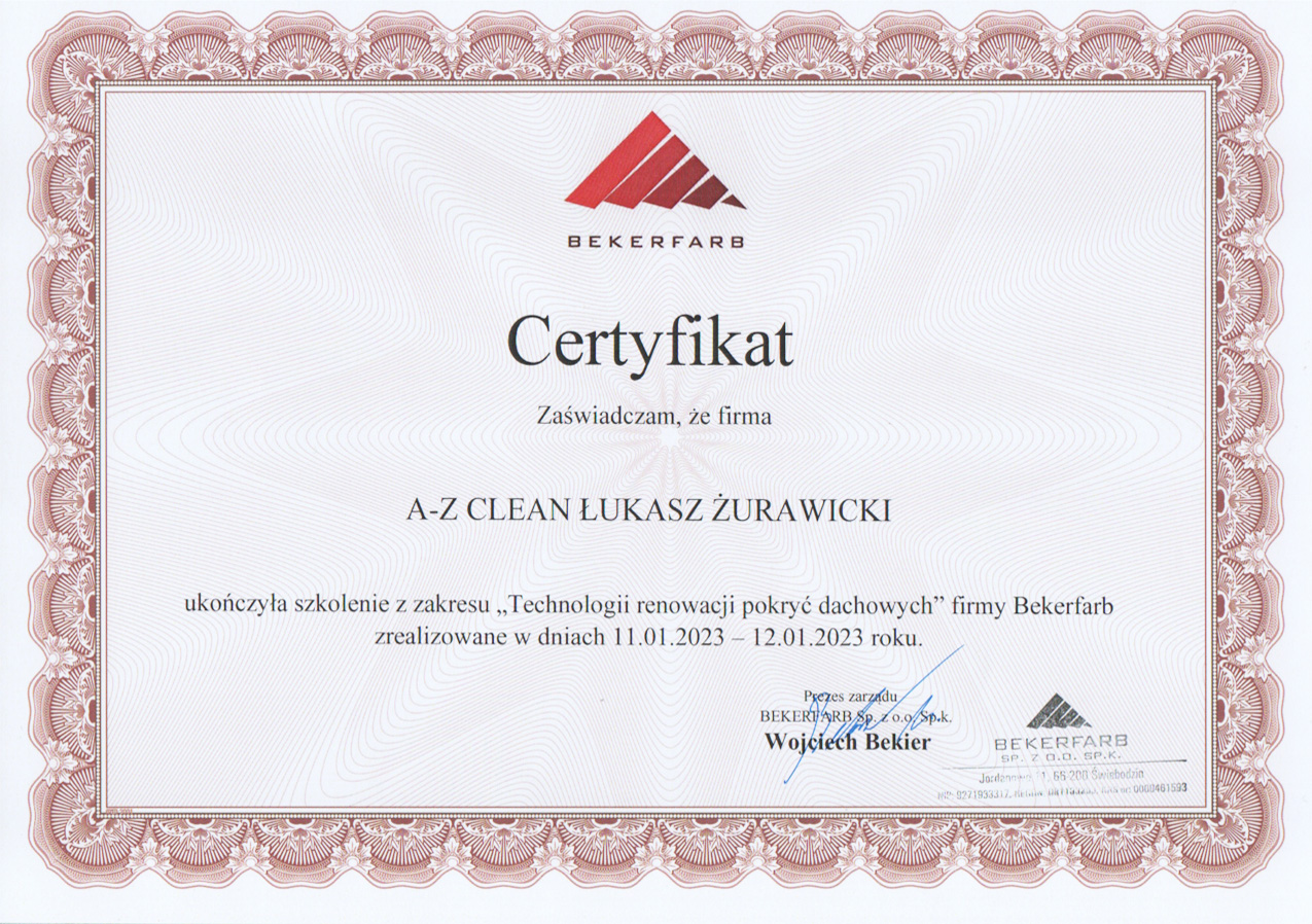 Usługi wykonywane przez AZ-Clean to gwarancja rzetelności, terminowości i profesjonalizmu. Dołącz do grona zadowolonych klientów. Ciesz się czystym i dobrze zabezpieczonym dachem, elewacją, brukiem.